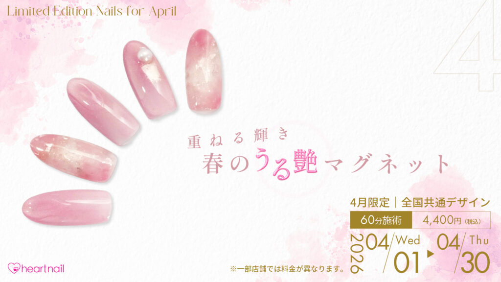 【2026年4月】にご来店いただいたお客様だけが体験できる特別ネイルデザインをご用意しました!こちらの2つのデザインは【全国のはあとねいる】にて施術可能になっております!